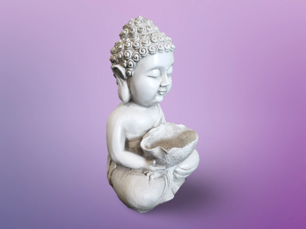 Imagen resina Buda manto de flor con pedestal premium 40cm _ G09